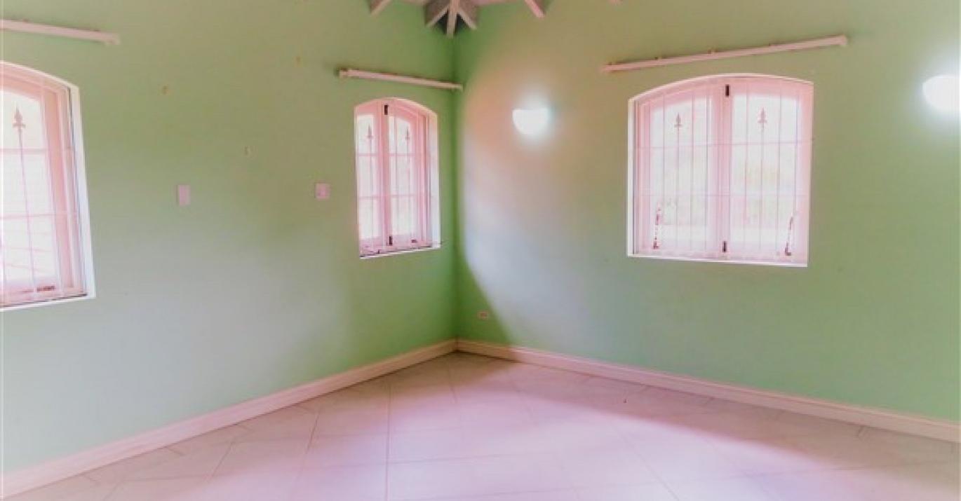 The downstairs boasts a covered veranda with a bar, looking out to the pool. Going up the wood stairs with beautiful coral rendering at the top leads to the master bedroom and two others. The master has two balconies, an oversized walk-in closet and bathroom. All bedrooms are spacious, with ensuite bathrooms, large closets and AC units.
