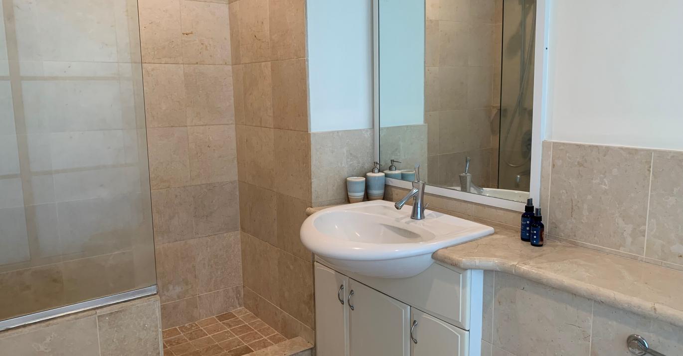 The master bedroom, which also opens on to the covered terrace, offers excellent closet and storage space as well as an en suite bathroom. The guest room is also spacious with ample storage. The second full bathroom services this guest room and also doubles as a powder room for guests. In between the bedrooms, sits a small room which is ideal as either a little office/study or additional storage room.