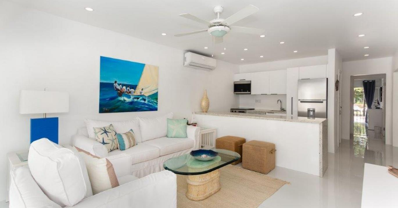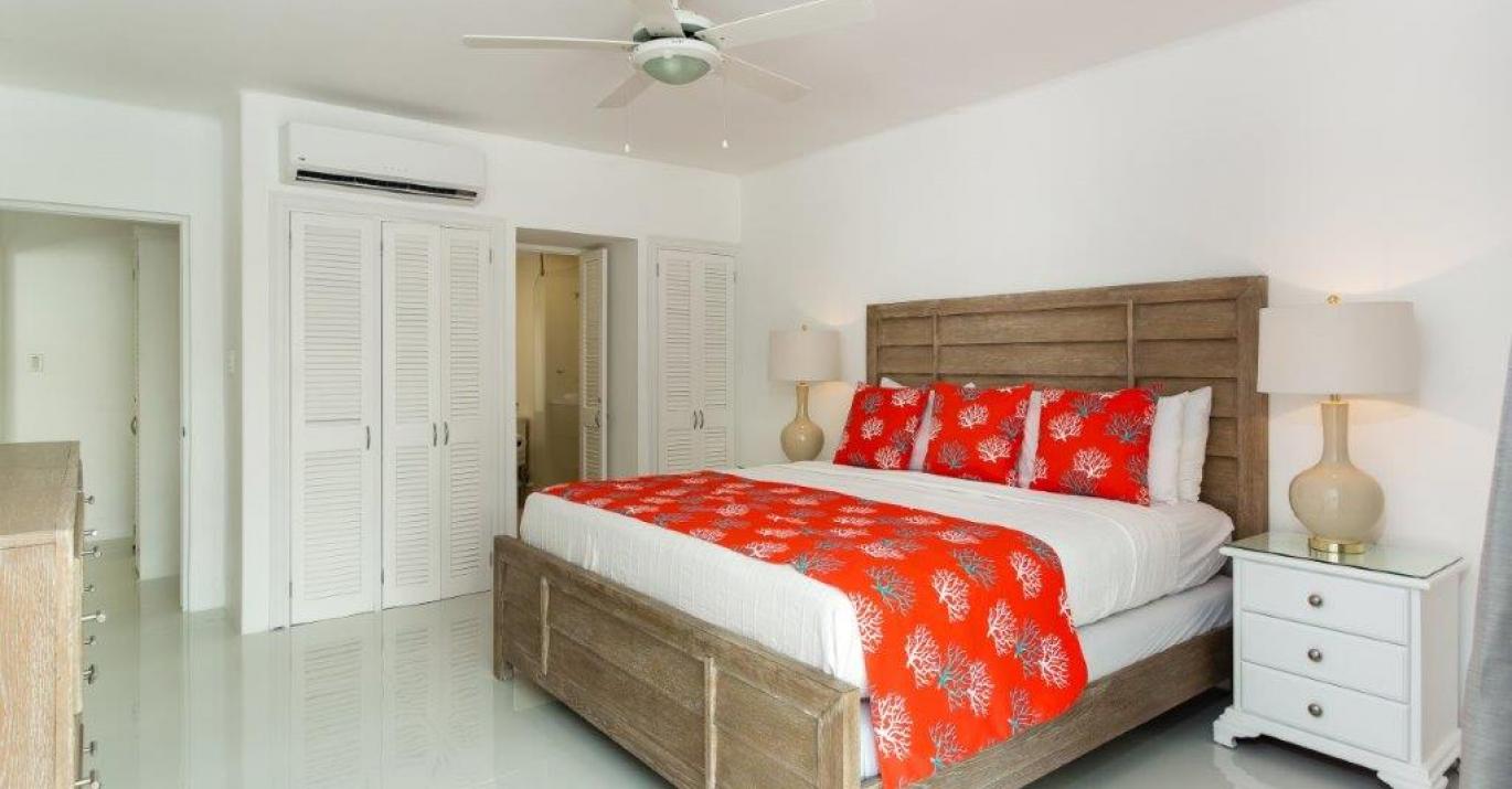 This luxurious 2 bedroom apartment comes fully air-conditioned, with fans throughout and a relaxing patio to enjoy the days. Located on the first floor, opposite the pool and just a one minute walk to the beach through the well-tended gardens, Sea Glass has decor with a flat-screen TV in both the living room and master bedroom.