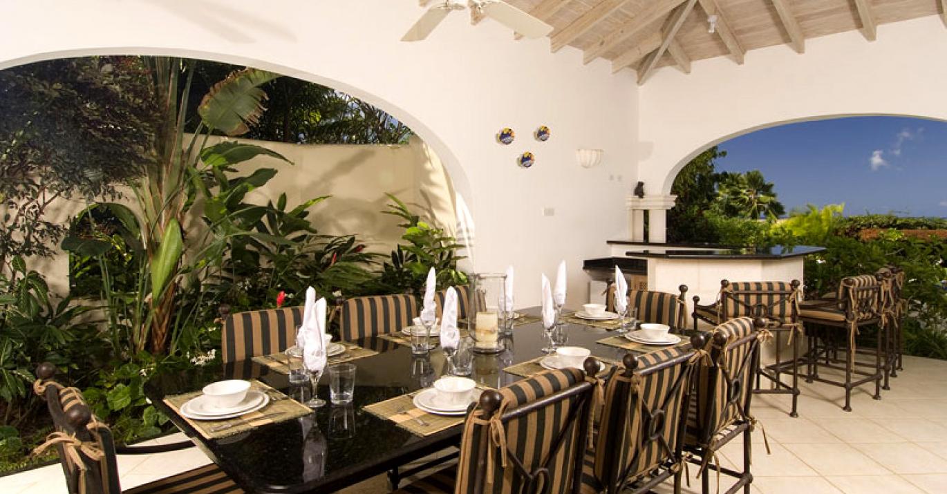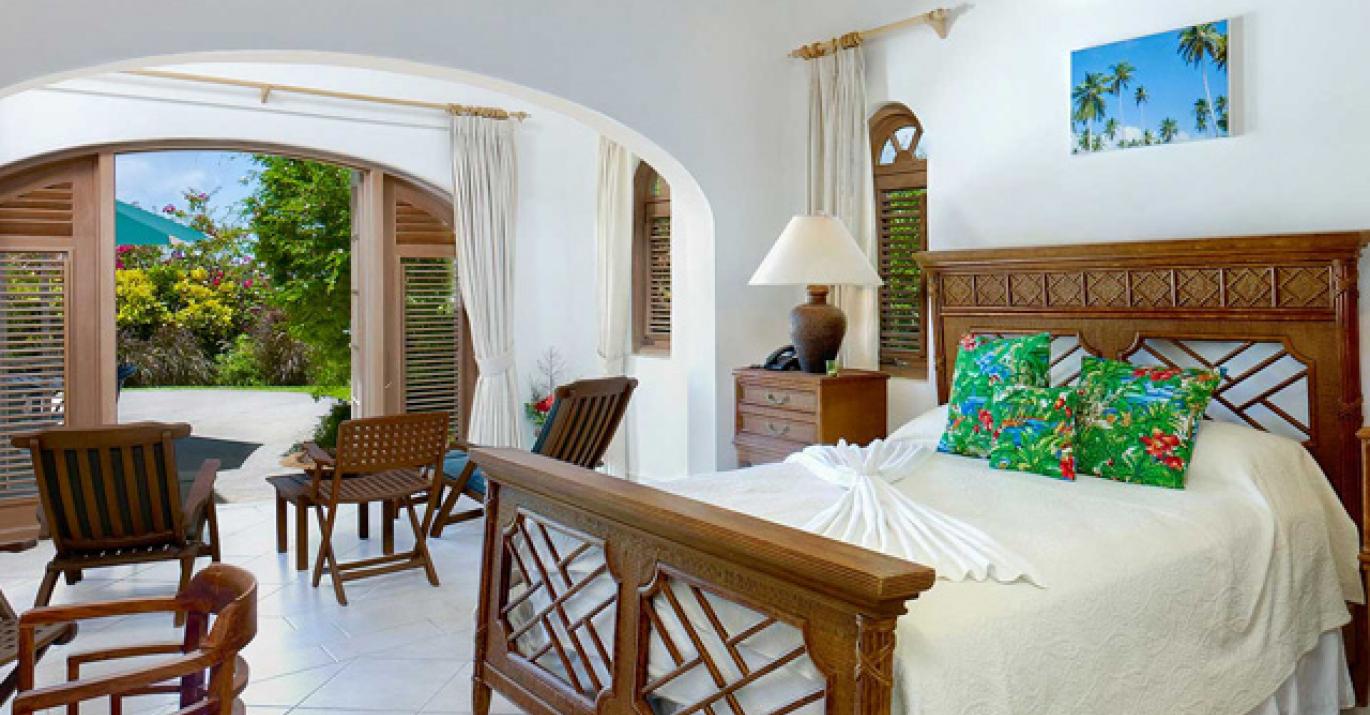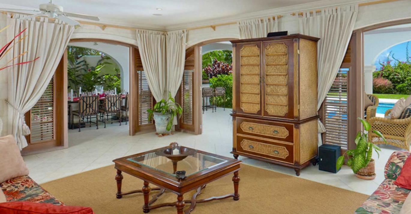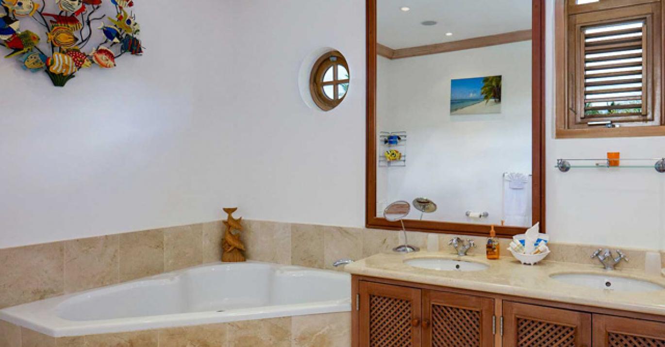 The internal design is stunning, with elegantly curved doors and windows in natural wood reflecting a cloister-like ambience within the coral stone walls. The matching jalousie shutters throughout the house add a further touch of refinement, and provide a cooling sea breeze in the living areas to complement the ceiling fans. There are three bedrooms in the main house, with the fourth in a separate self-contained cottage in the grounds. All bedrooms have air conditioning, ceiling fans, walk-in closets and ensuite bathrooms with marble throughout.