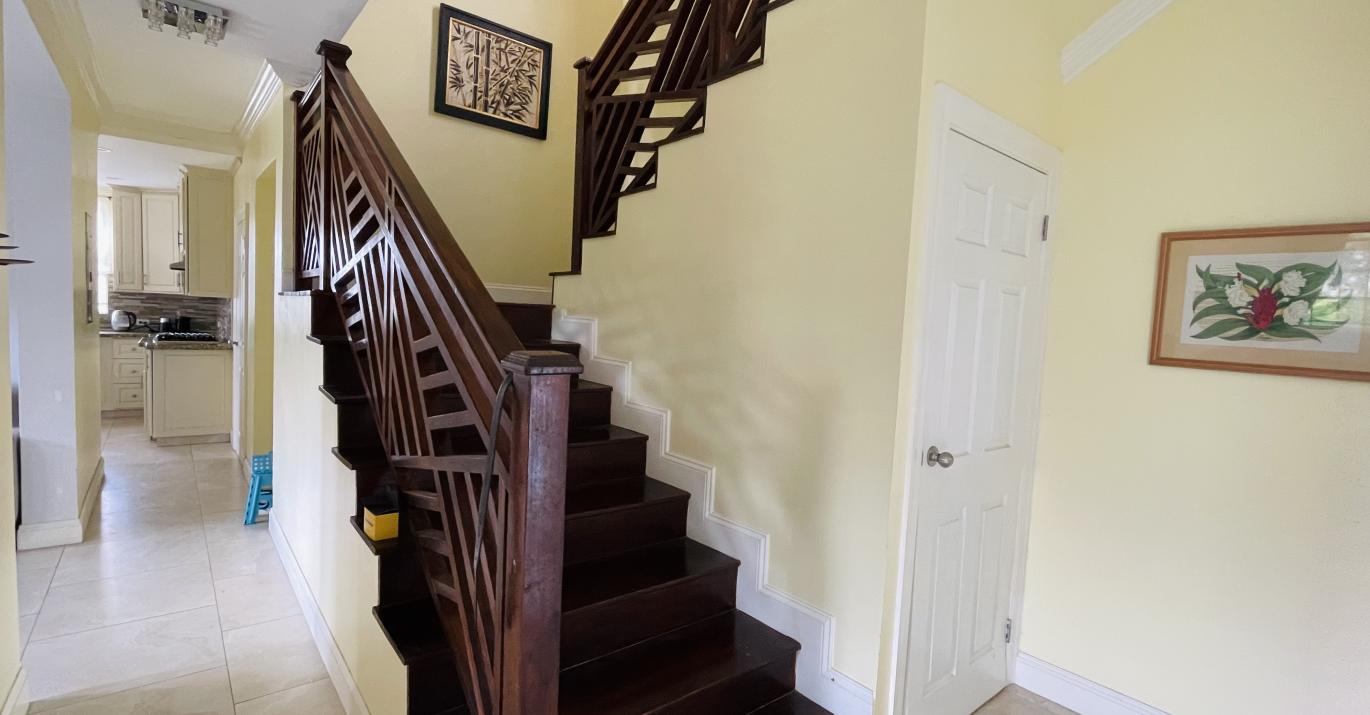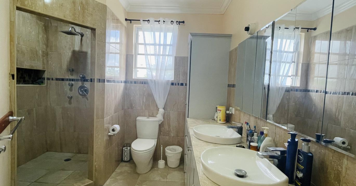 This two-tone two level property is located on an attractive corner lot in this development with views of the Bridgetown port as well as Warrens. Features include a two car carport with water storage tank located underneath it. Storage is plentiful in this home with ample cupboard space as well as a room in the garage ideal for garden tools.