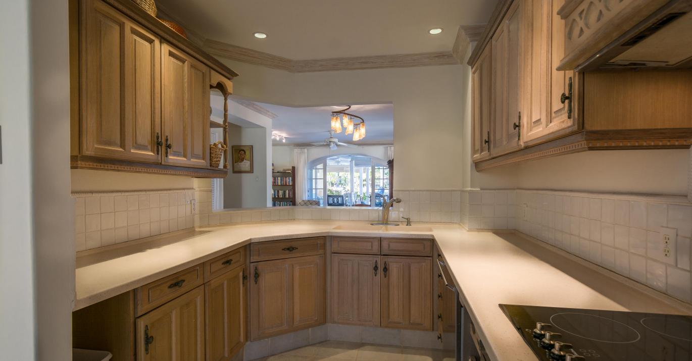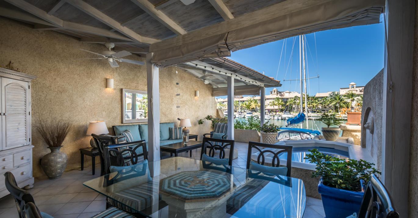 The penthouse suite is surrounded by sparkling vistas of the lagoon. A closet-lined dressing area and spacious bathrooms lead onto the extended area where the owner has enclosed the back patio and made it into an office or extra bedroom. The villa is designed to give all guests maximum comfort and privacy. While living and dining areas are designed for conviviality, each bedroom provides a restful sanctuary.