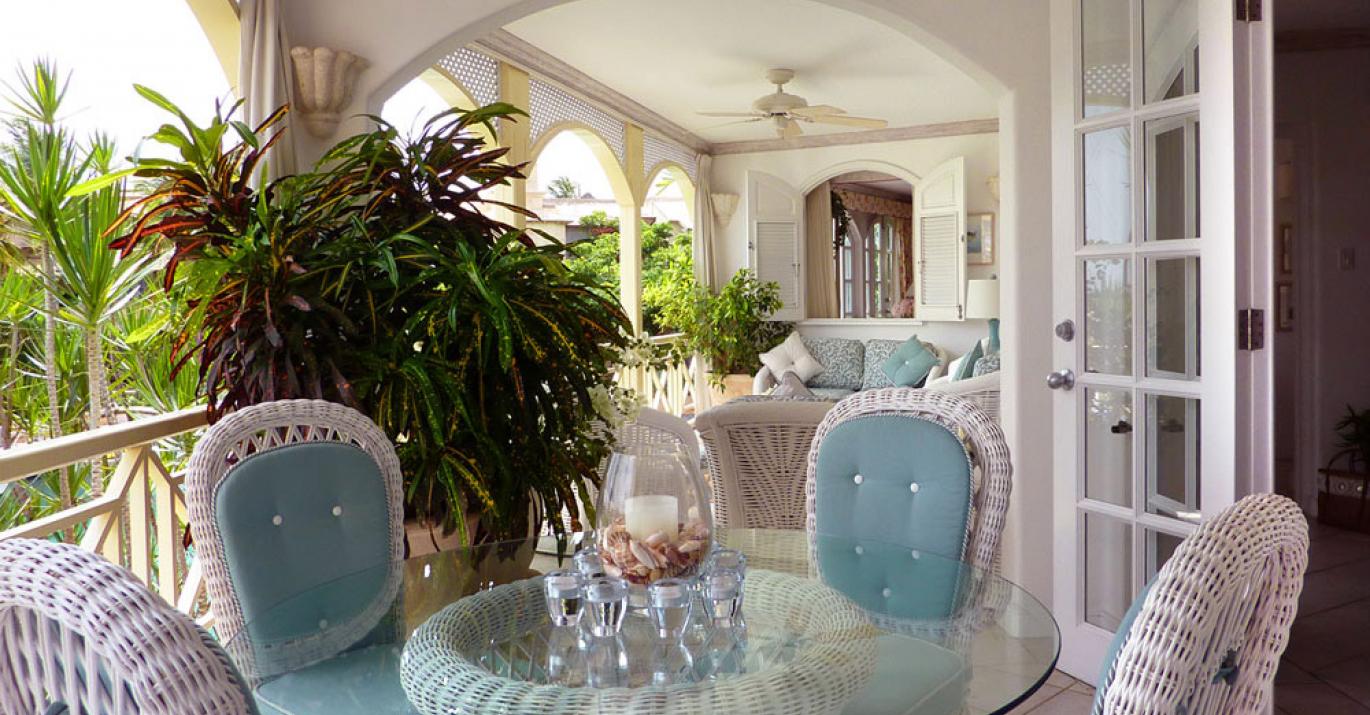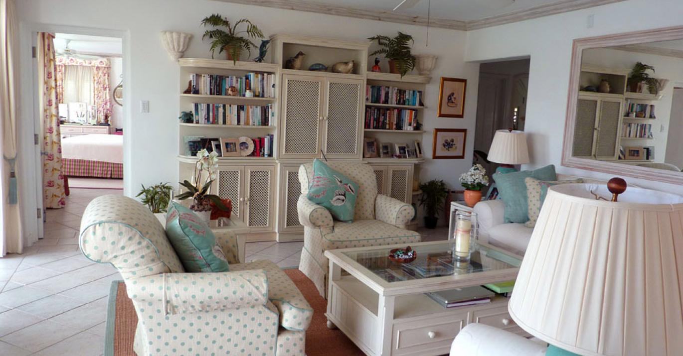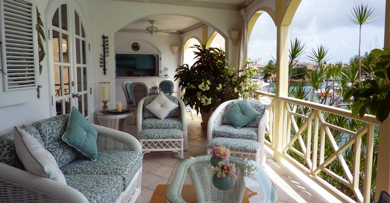 Laid out on one easy level, this apartment is on the middle floor, with elevator and staircase access. Beyond the tropical elegance of the living room, a wide terrace provides an outdoor sitting and dining area overlooking not only the lagoon, but looking out through the yacht channel to wonderful sunsets.