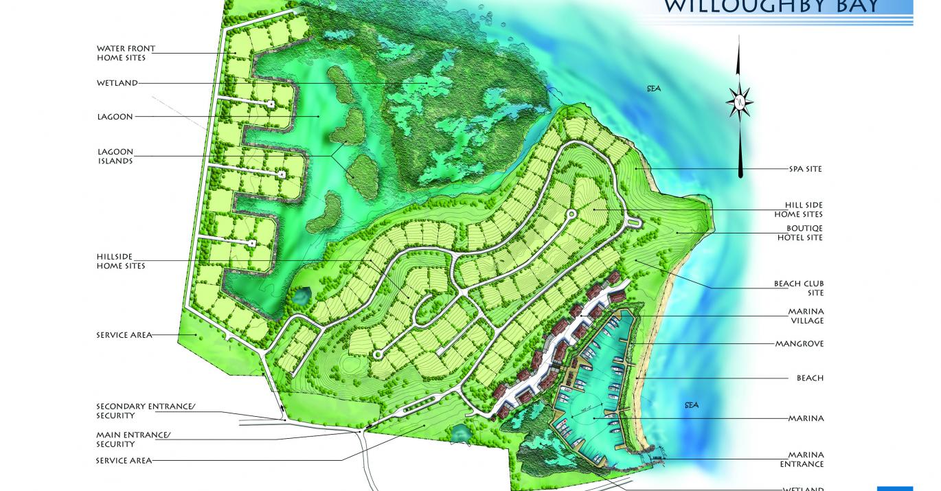 100 acres of prime land for sale overlooking and on the waterfront of the magnificent Willoughby Bay on the south coast of Antigua.